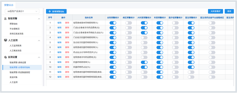 通過設置合理用藥指標目標值,實現合理用藥指標智能預警