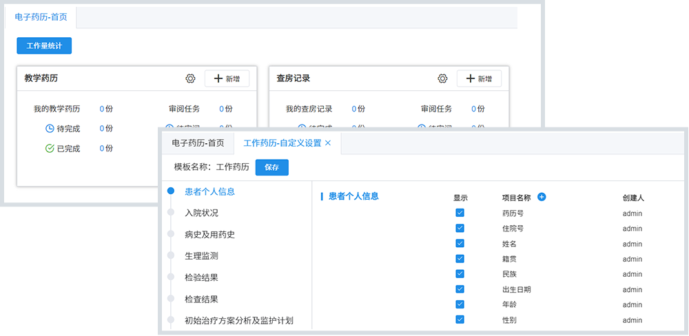 根據用戶需求自定義相關指標,如抗抑郁藥出院帶藥三聯及以上使用率、抗腫瘤藥物使用率