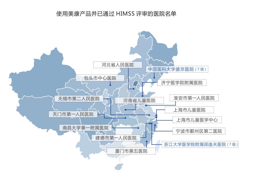 美康為醫(yī)院通過HIMSS評(píng)審提供助力,截止目前,已有十五家醫(yī)院使用美康產(chǎn)品順利通過HIMSS評(píng)審。